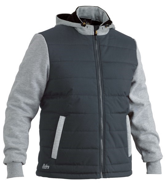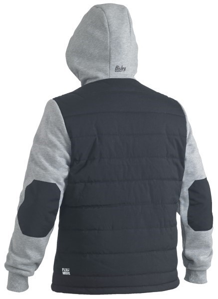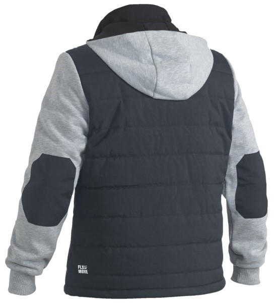 Contrast fleece fabric at sleeves and lined hood
