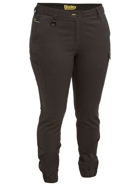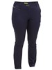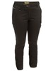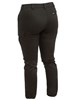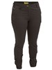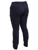 Stretch mid-rise fit with curved waistband to prevent gaping at back