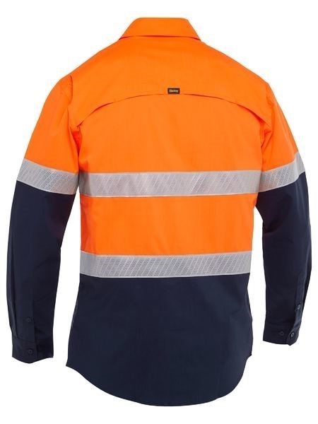 Bisley Mens X Airflow Long Sleeve Work Shirt 88% Polyester, 9% Cotton, 3% Spandex Stretch Ripstop with Perforated Reflective Tape