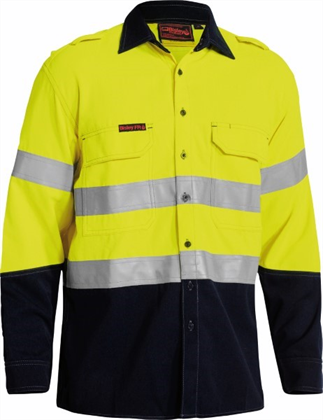 Twin Bisley signature single mitred chest pockets with plastic press snap flap closure