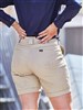 Stretch mid rise fit with curved waistband for comfort and movement