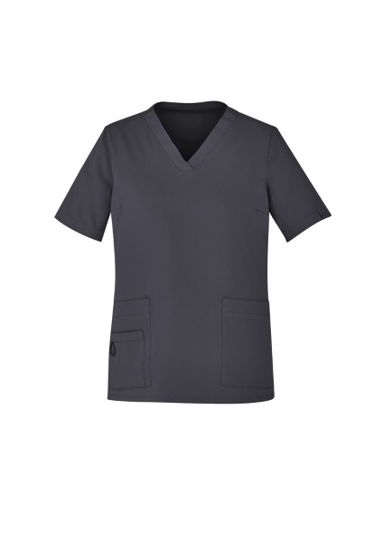 Focusing on functionality, the V-neck top is designed to be a relaxed fit, suitable for most body shapes
