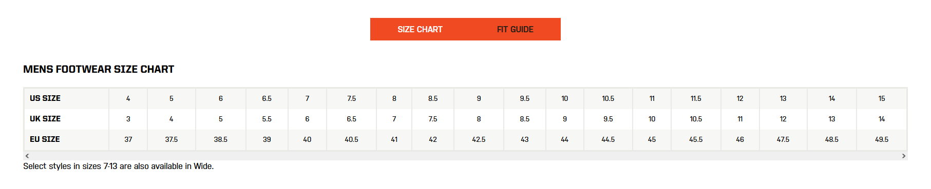US footwear sizes