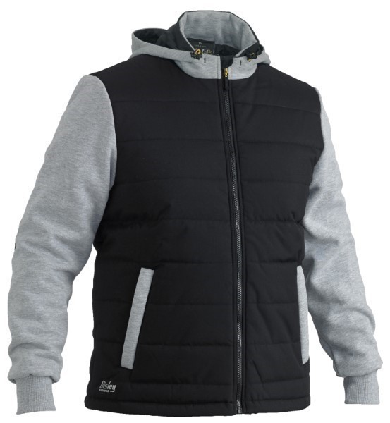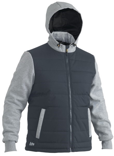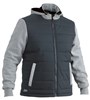 Contrast fleece fabric at sleeves and lined hood