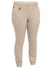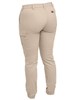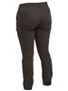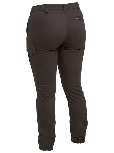 Stretch mid-rise fit with curved waistband to prevent gaping at back