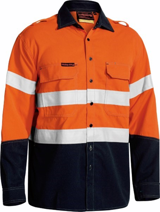 Twin Bisley signature single mitred chest pockets with plastic press snap flap closure