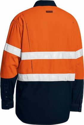Twin Bisley signature single mitred chest pockets with plastic press snap flap closure and left pocket with pen division