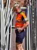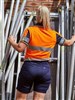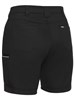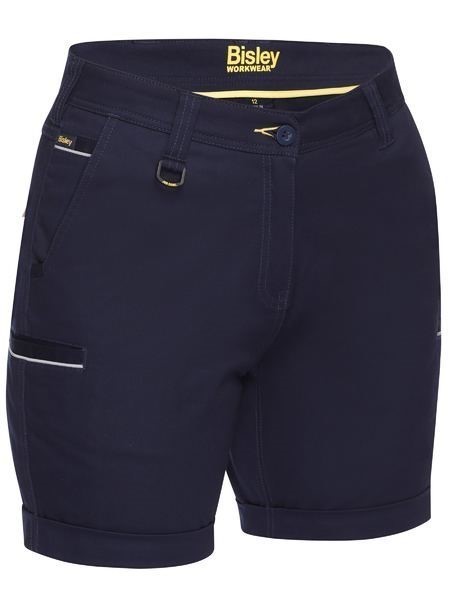 Stretch mid rise fit with curved waistband for comfort and movement