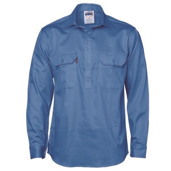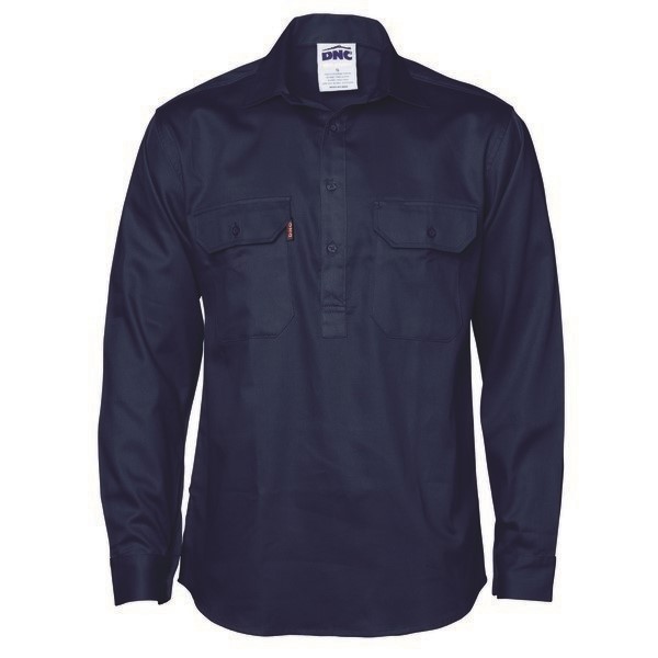 DNC Closed Front Cotton Drill Shirt Long Sleeve