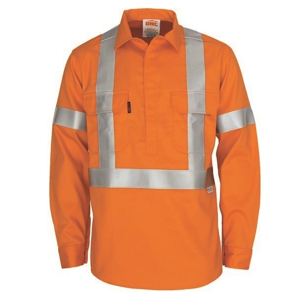 Closed front concealed placket with FR plastic studs closure, Gusset sleeve, comply with BS EN ISO 116612:2008 for FR & NFPA70E(ASTEMF1959/F) for Arc rating - APTV: 6.8Cal/CM2, HRC:1