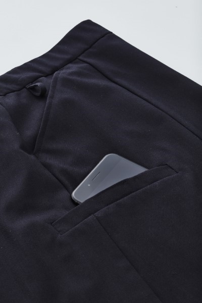 Side pockets, key loop and mock pleat at back for modesty and movement